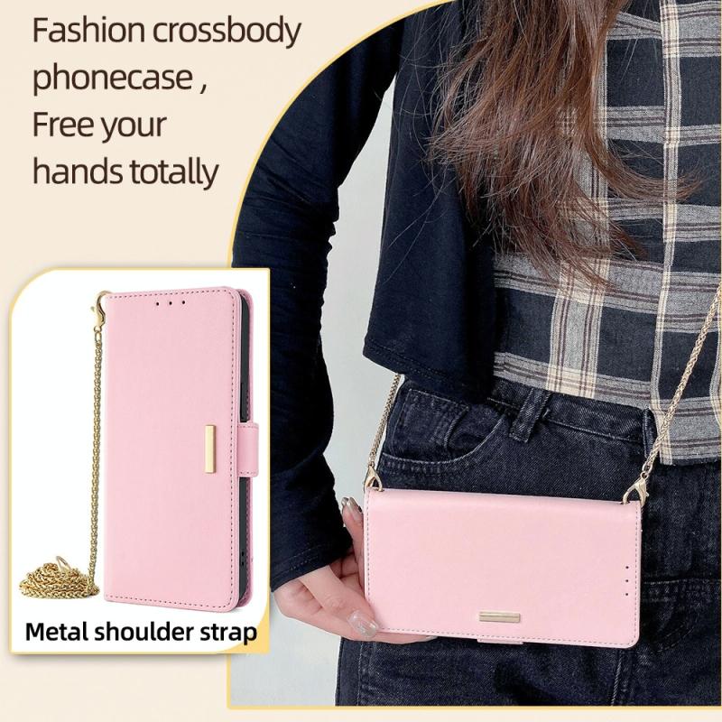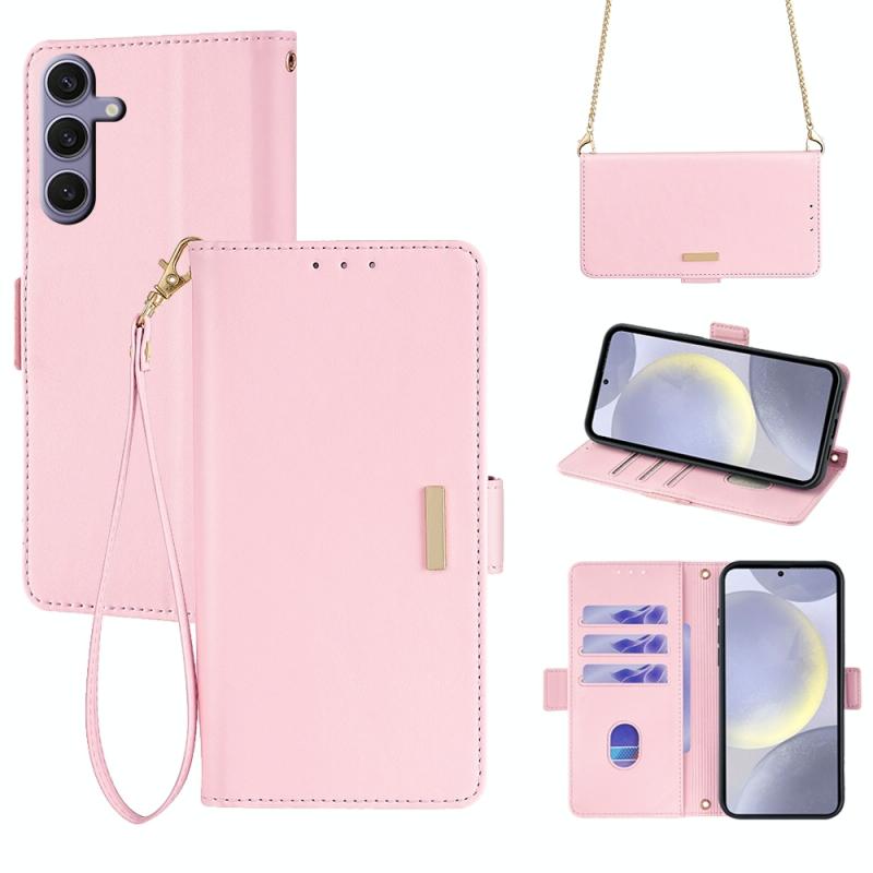 For Samsung Galaxy A35 5G Crossbody Chain Leather Phone Case(Pink)