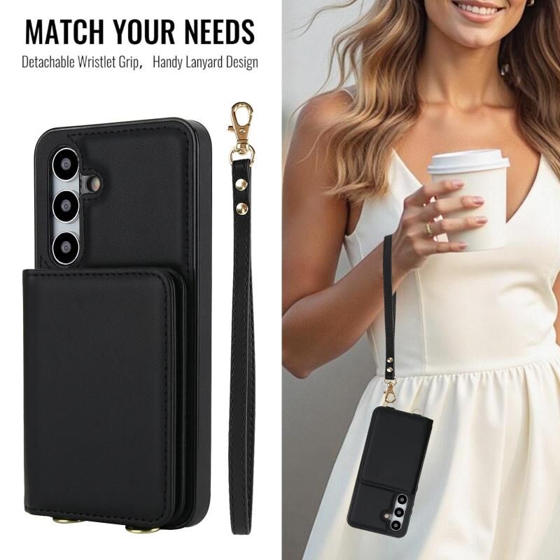 Θήκη κινητού Samsung Galaxy A35 5G από δέρμα, με σταυρωτό λουρί, διπλή αγκράφα και προστασία RFID (Λευκό)