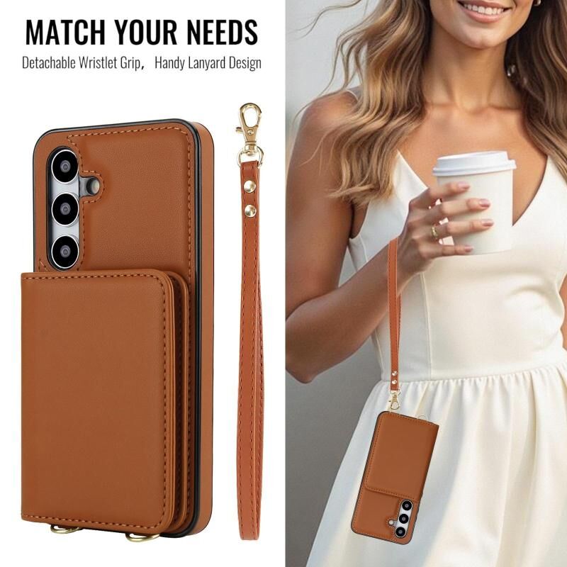 Θήκη κινητού Samsung Galaxy A35 5G από δέρμα, με σταυρωτό λουρί, διπλή αγκράφα και προστασία RFID (Λευκό)