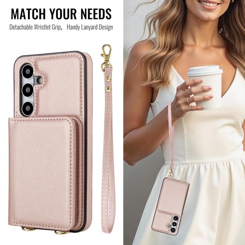 Θήκη κινητού Samsung Galaxy A35 5G από δέρμα, με σταυρωτό λουρί, διπλή αγκράφα και προστασία RFID (Λευκό)