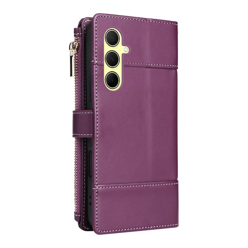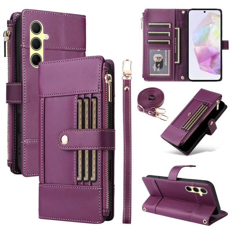 For Samsung Galaxy A35 5G Crossbody Strap RFID Blocking Zipper Wallet Leather Phone Case(Purple)