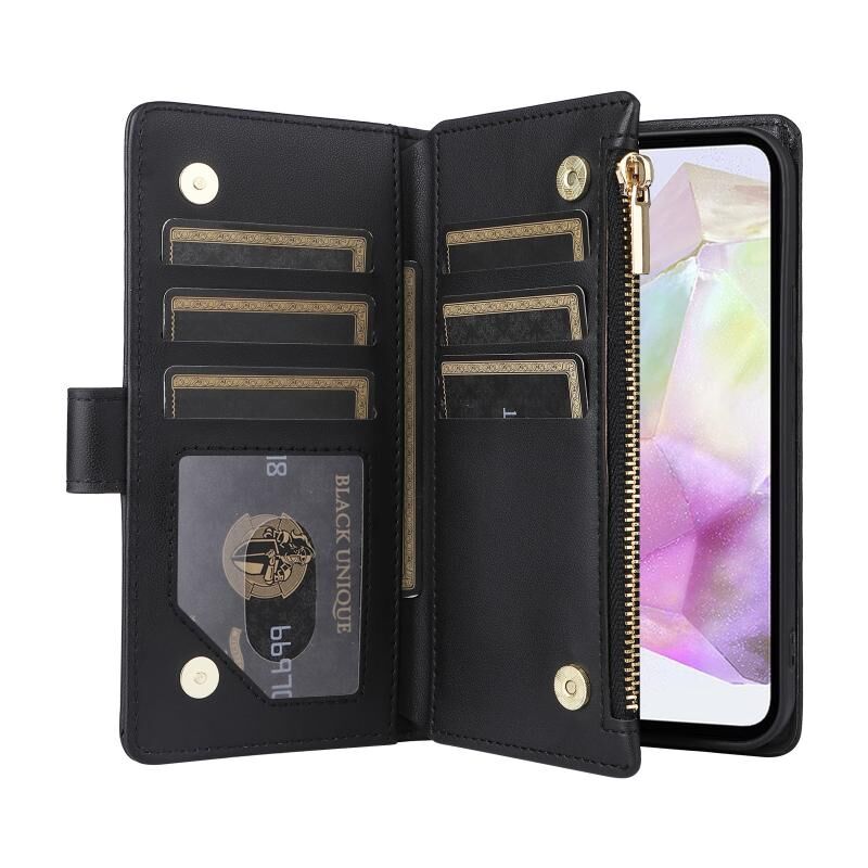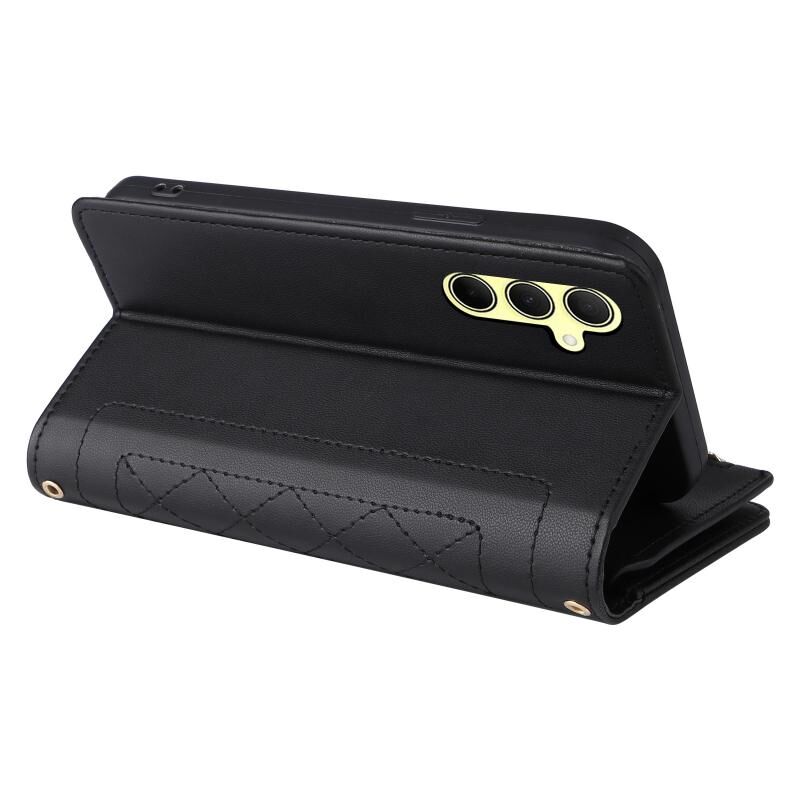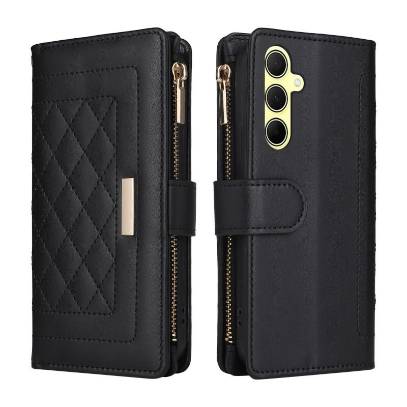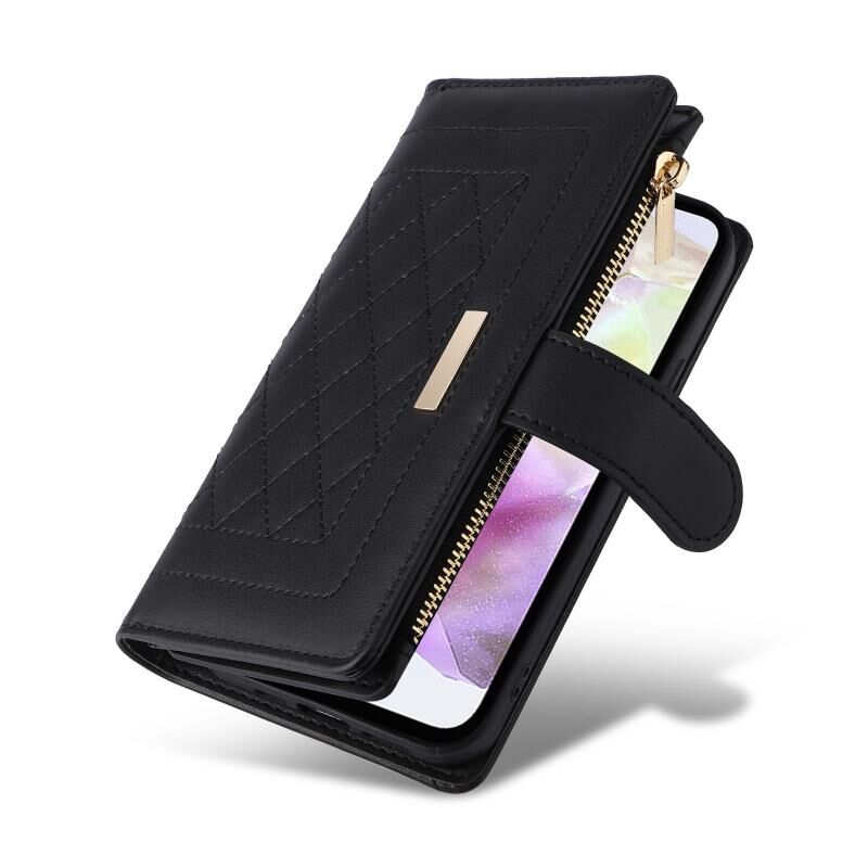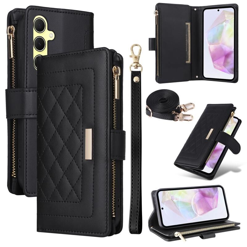 Για Samsung Galaxy A35 5G Crossbody φερμουάρ πορτοφόλι ρόμβος δερμάτινη θήκη τηλεφώνου (μαύρο)