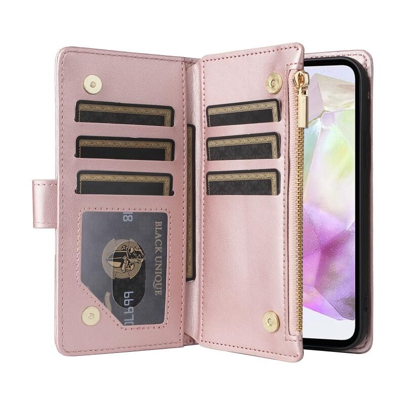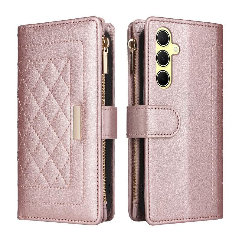 Για Samsung Galaxy A35 5G Crossbody φερμουάρ πορτοφόλι ρόμβος δερμάτινη θήκη τηλεφώνου (Rose Gold)