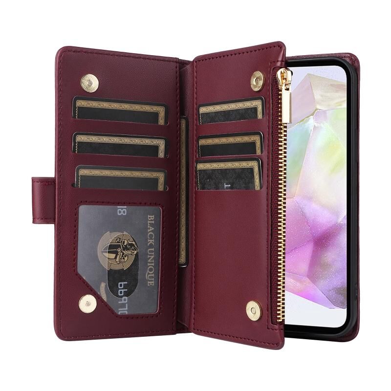 Για Samsung Galaxy A35 5G Crossbody φερμουάρ πορτοφόλι ρόμβος δερμάτινη θήκη τηλεφώνου (κόκκινο κρασί)