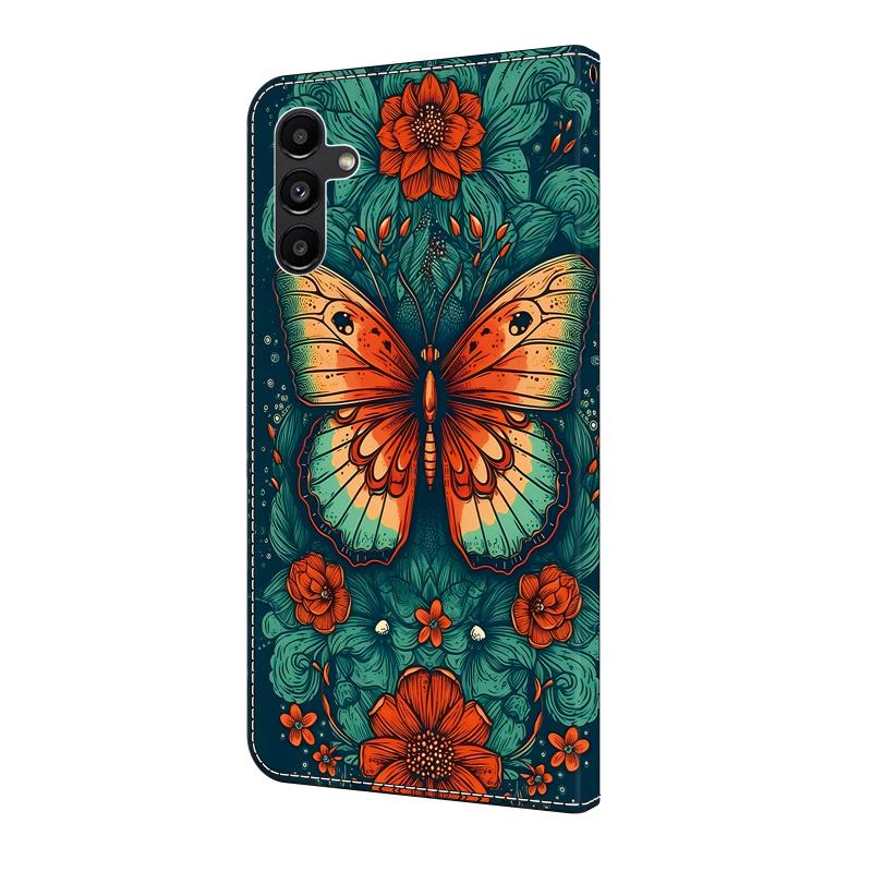 Θήκη τηλεφώνου Samsung Galaxy A35 5G από δέρμα με κρυστάλλινη ζωγραφική (Λουλούδι Πεταλούδα)