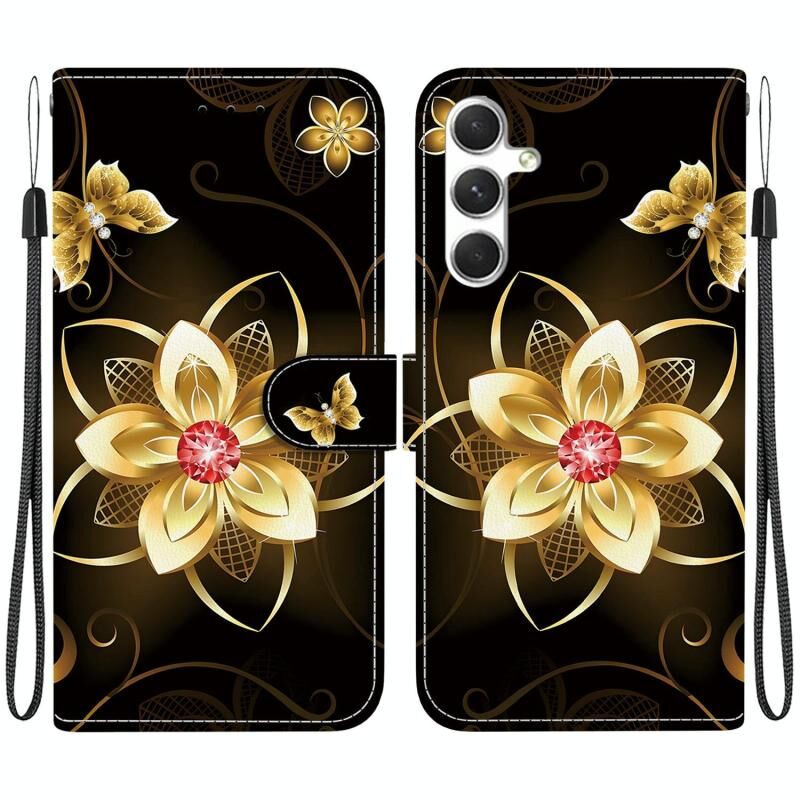 Θήκη τηλεφώνου Samsung Galaxy A35 5G από δέρμα με πολύχρωμη σχεδίαση κρυστάλλινης υφής (Χρυσά Φτερά Πεταλούδας)
