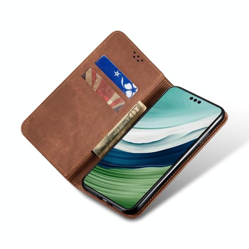 Για Samsung Galaxy A35 5G Denim υφή Casual στυλ οριζόντια Flip δερμάτινη θήκη (καφέ)