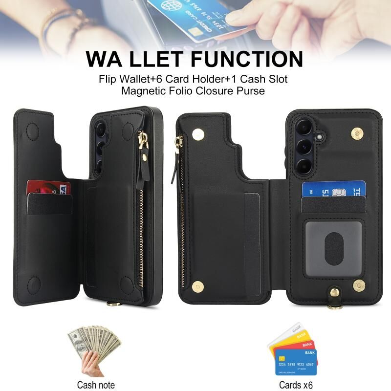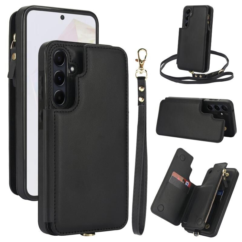 Θήκη τηλεφώνου Samsung Galaxy A35 5G από δέρμα με διπλό φερμουάρ και RFID, με κοντό κορδόνι (Λευκό)