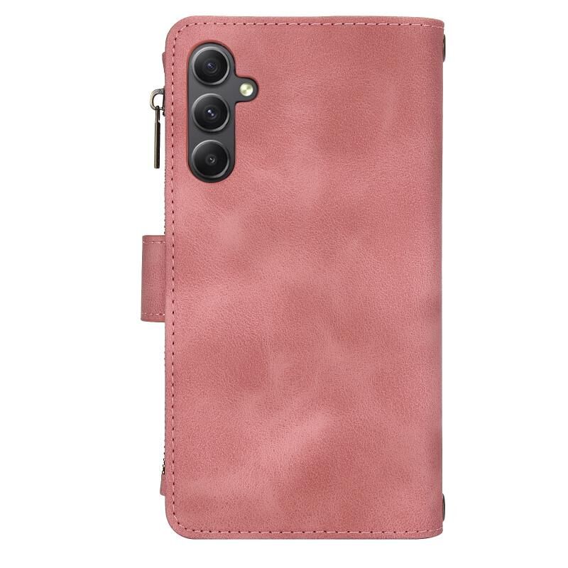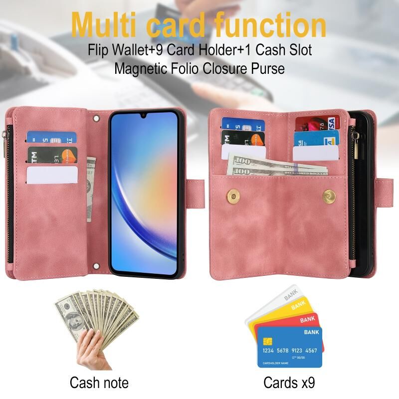 Για Samsung Galaxy A35 5G Dream 9-Card φερμουάρ πορτοφόλι RFID δερμάτινη θήκη τηλεφώνου με κορδόνι (Rose Gold)