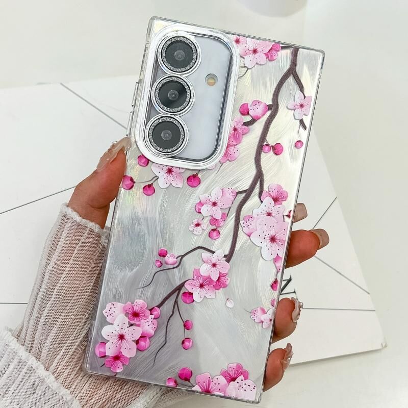 Θήκη κινητού τηλεφώνου Samsung Galaxy A35 5G TPU με ηλεκτρολυτική επίστρωση, σχέδιο με λουλούδια και φυτά (Λουλούδι δαμασκηνιάς FL6)
