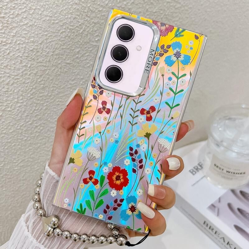 Θήκη τηλεφώνου για Samsung Galaxy A35 5G με ηλεκτρολυτική επίστρωση, λουλούδι laser και λουρί καρπού (Λουλούδι AH6)