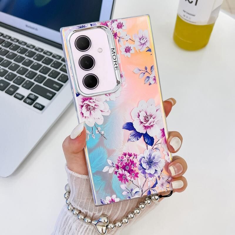 Θήκη τηλεφώνου για Samsung Galaxy A35 5G με ηλεκτρολυτική επίστρωση, λουλουδάτο σχέδιο λέιζερ και λουρί καρπού (Παιώνια AH11)