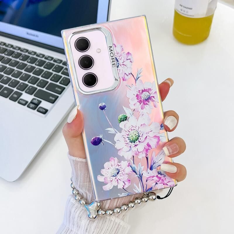 Θήκη τηλεφώνου για Samsung Galaxy A35 5G με ηλεκτρολυτική επίστρωση, λουλούδι λέιζερ και λουρί καρπού (Zinnia AH9)