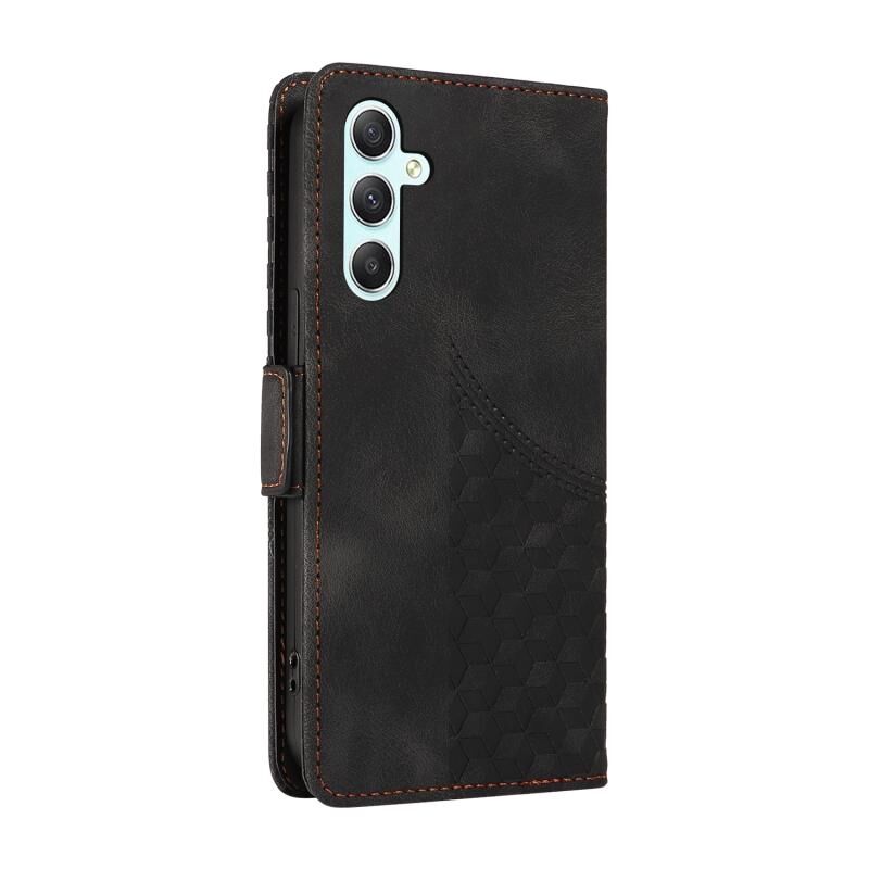 Για Samsung Galaxy A35 5G ανάγλυφο ρόμβος αστερόεσσα δερμάτινη θήκη τηλεφώνου (μαύρο)