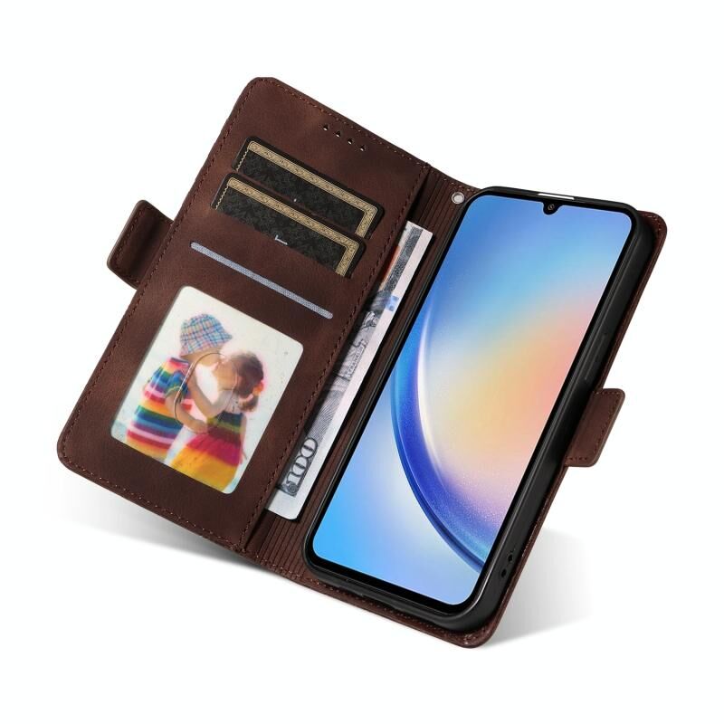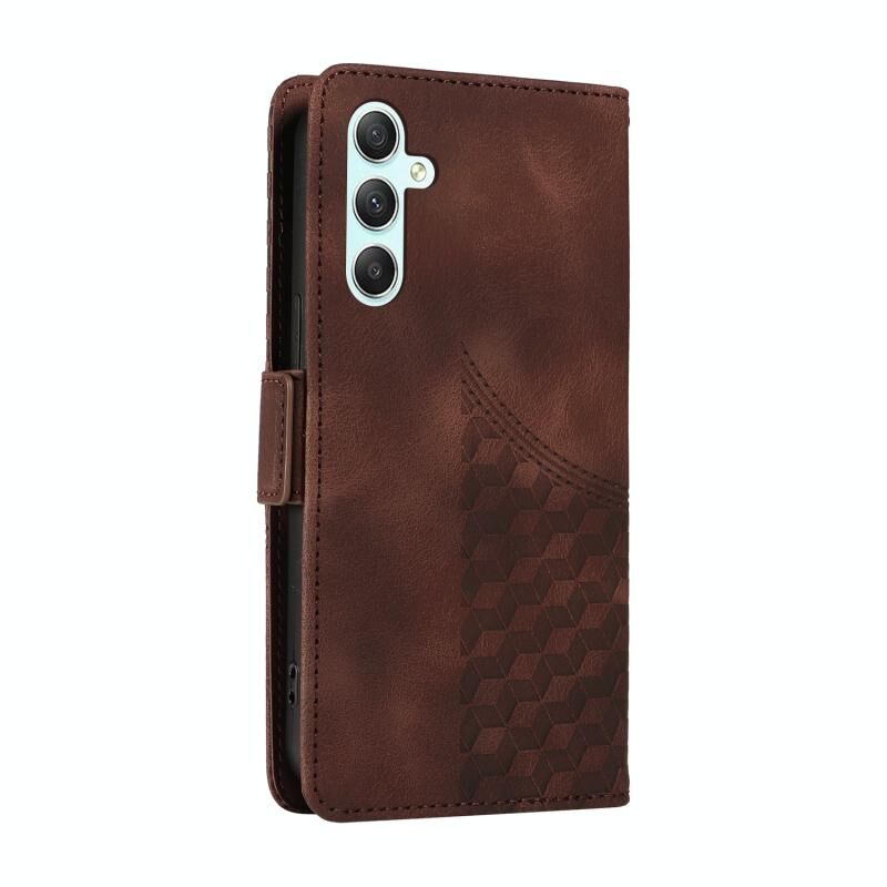 Για Samsung Galaxy A35 5G ανάγλυφο ρόμβος αστερόεσσα δερμάτινη θήκη τηλεφώνου (καφέ)