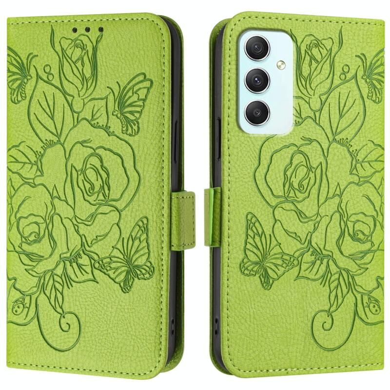 Για Samsung Galaxy A35 5G ανάγλυφο Rose RFID Anti-theft δερμάτινη θήκη τηλεφώνου (Πράσινο)
