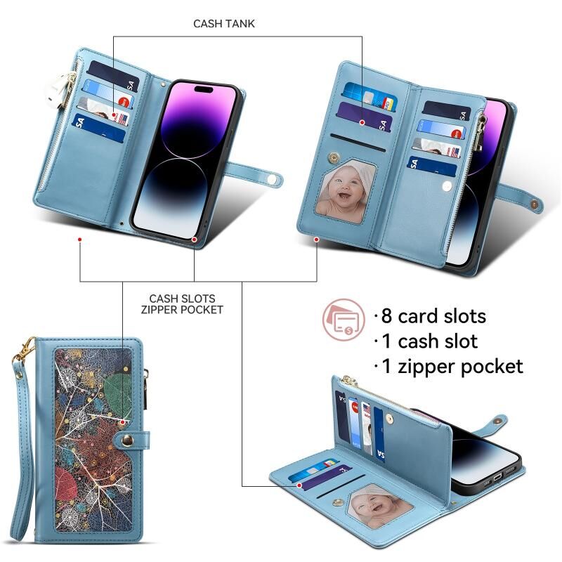 4. Πορτοφόλι με φερμουάρ: Η σούπερ υποδοχή πολλαπλών καρτών μπορεί να χωρέσει πολλαπλές κάρτες. το άνοιγμα και το κλείσιμο της θήκης μετρητών με φερμουάρ μπορεί να προστατεύσει τα μετρητά σας. Άνετο και πρακτικό για να βγείτε έξω μια τσάντα κινητού τηλεφώνου αρκετά.