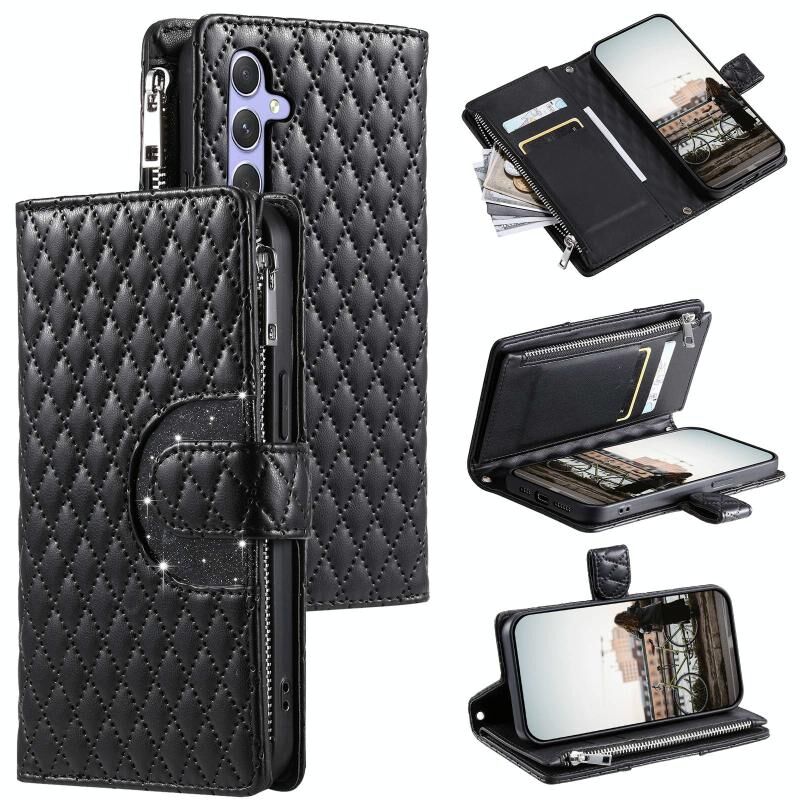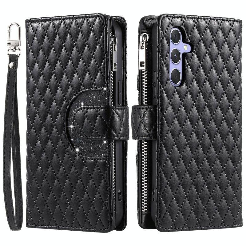 Για Samsung Galaxy A35 5G Glitter πλέγμα φερμουάρ πορτοφόλι δερμάτινη θήκη τηλεφώνου (μαύρο)