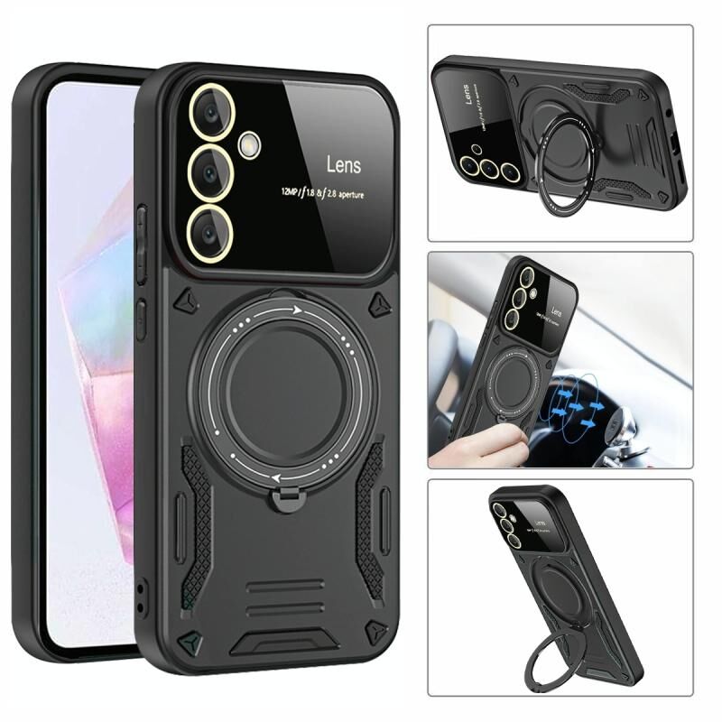 Θήκη τηλεφώνου για Samsung Galaxy A35 5G με μεγάλο παράθυρο και υποστήριξη MagSafe (Μαύρο)