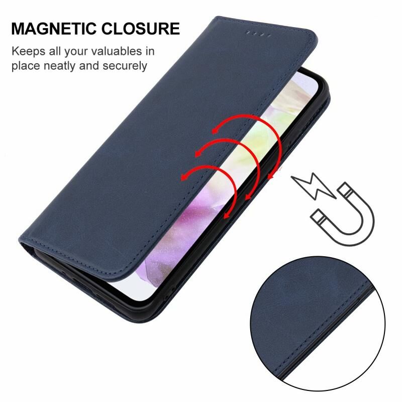 Για Samsung Galaxy A35 5G Μαγνητικό κλείσιμο δερμάτινη θήκη τηλεφώνου (μπλε)