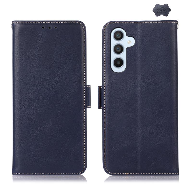 For Samsung Galaxy A35 5G Magnetic Crazy Horse Texture Genuine Leather RFID Phone Case(Blue)