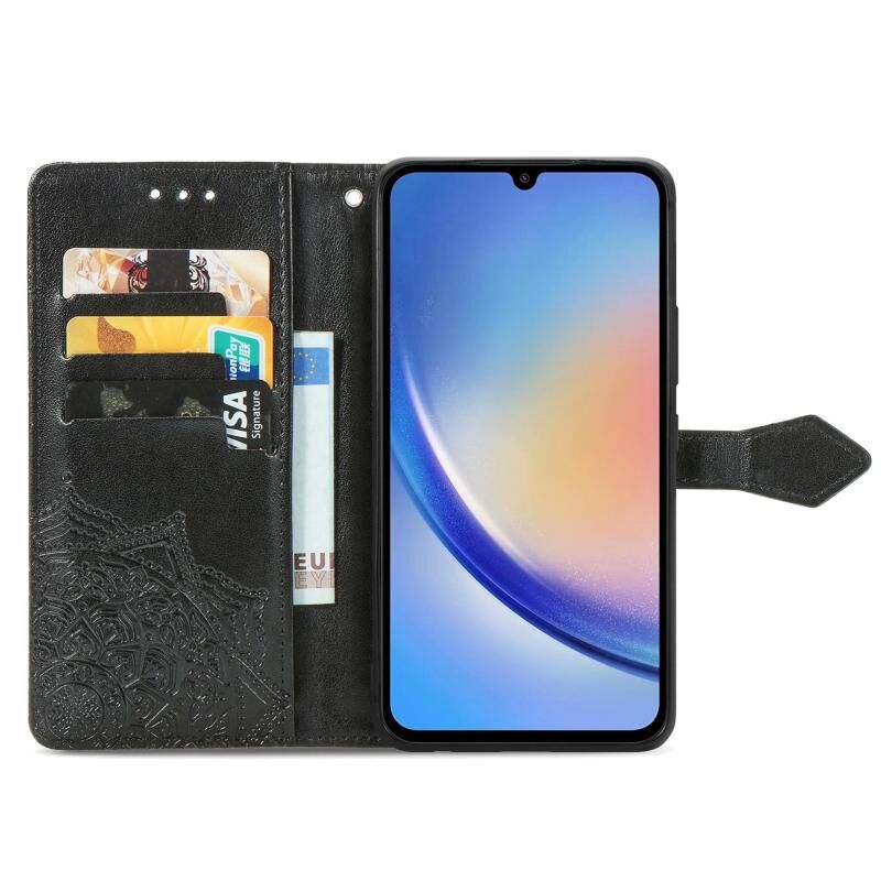 Για το Samsung Galaxy A35 5G Mandala λουλούδι ανάγλυφο δερμάτινη θήκη τηλεφώνου (Μαύρο)