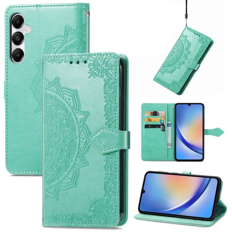 Για Samsung Galaxy A35 5G Mandala λουλούδι ανάγλυφο δερμάτινη θήκη τηλεφώνου (πράσινο)