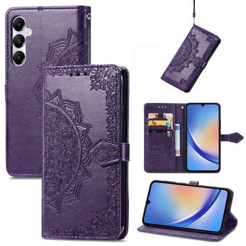 Για Samsung Galaxy A35 5G Mandala λουλούδι ανάγλυφο δερμάτινη θήκη τηλεφώνου (μωβ)