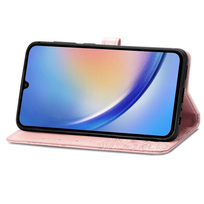 Για Samsung Galaxy A35 5G Mandala λουλούδι ανάγλυφο δερμάτινη θήκη τηλεφώνου (ροζ χρυσό)