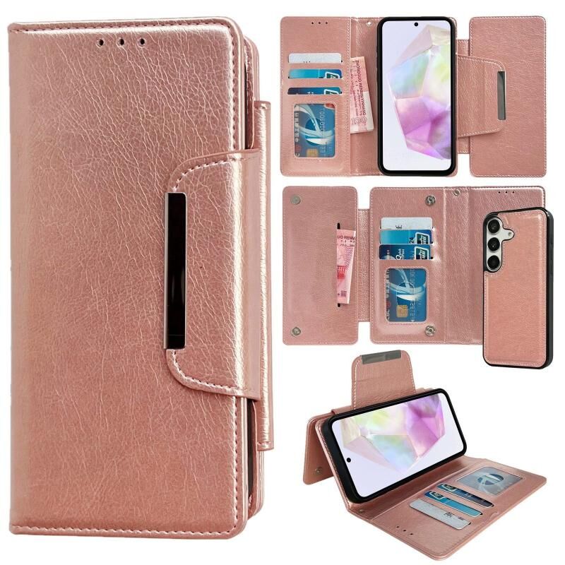 Για Samsung Galaxy A35 5G Πολυλειτουργική 7-κάρτα πορτοφόλι δερμάτινη θήκη τηλεφώνου (Ροζ χρυσός)