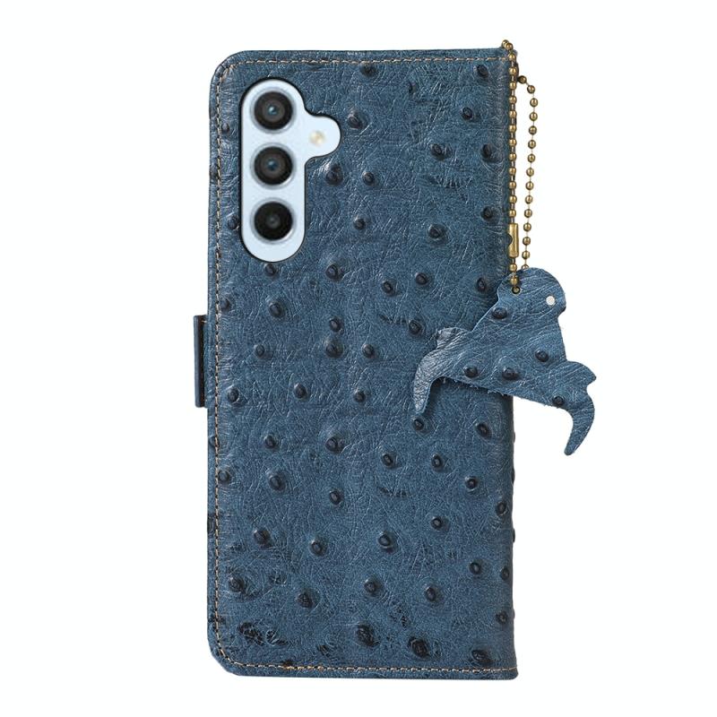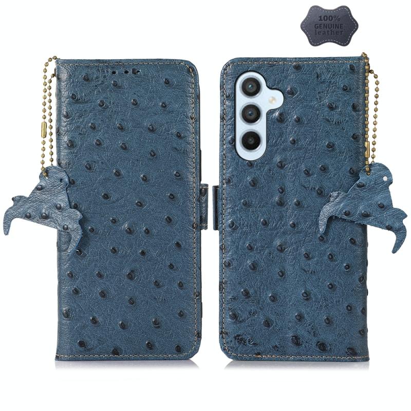 Θήκη τηλεφώνου Samsung Galaxy A35 5G από γνήσιο δέρμα με σχέδιο στρουθοκάμηλου και προστασία RFID (Μπλε)