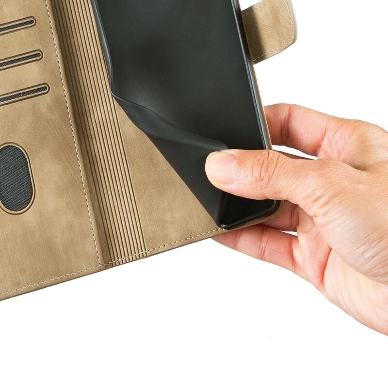 6. Λειτουργία Πορτοφολιού: Η δερμάτινη θήκη είναι εξοπλισμένη με τρεις υποδοχές καρτών και ένα διαμέρισμα για μετρητά, που μπορούν να χωρέσουν κάρτες και ένα μικρό ποσό χαρτονομισμάτων.