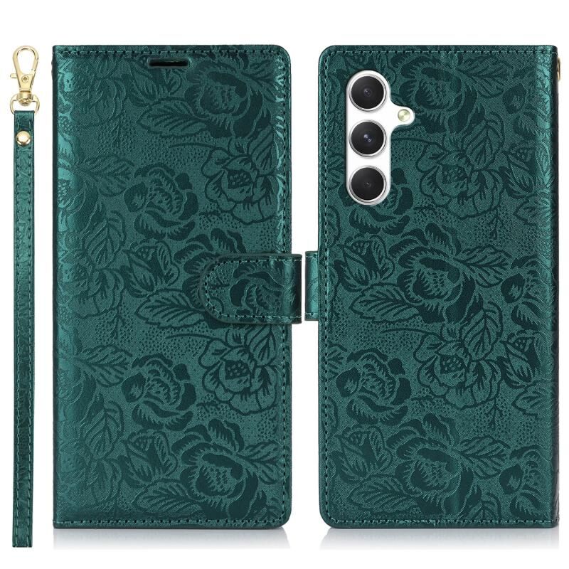 For Samsung Galaxy A35 5G Peony Flowers Imprint Leather Phone Case(Green)