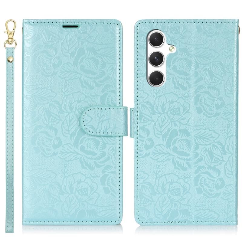 For Samsung Galaxy A35 5G Peony Flowers Imprint Leather Phone Case(Sky Blue)