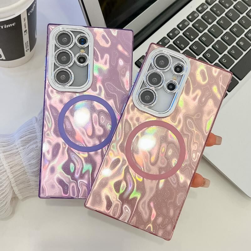 Θήκη κινητού τηλεφώνου Samsung Galaxy A35 5G με υφή επιμετάλλωσης, MagSafe, TPU και μεμβράνη φακού με γκλίτερ (Μωβ υφή αλουμινόχαρτου)