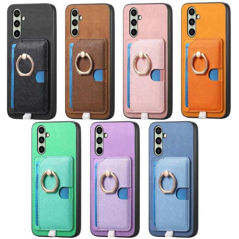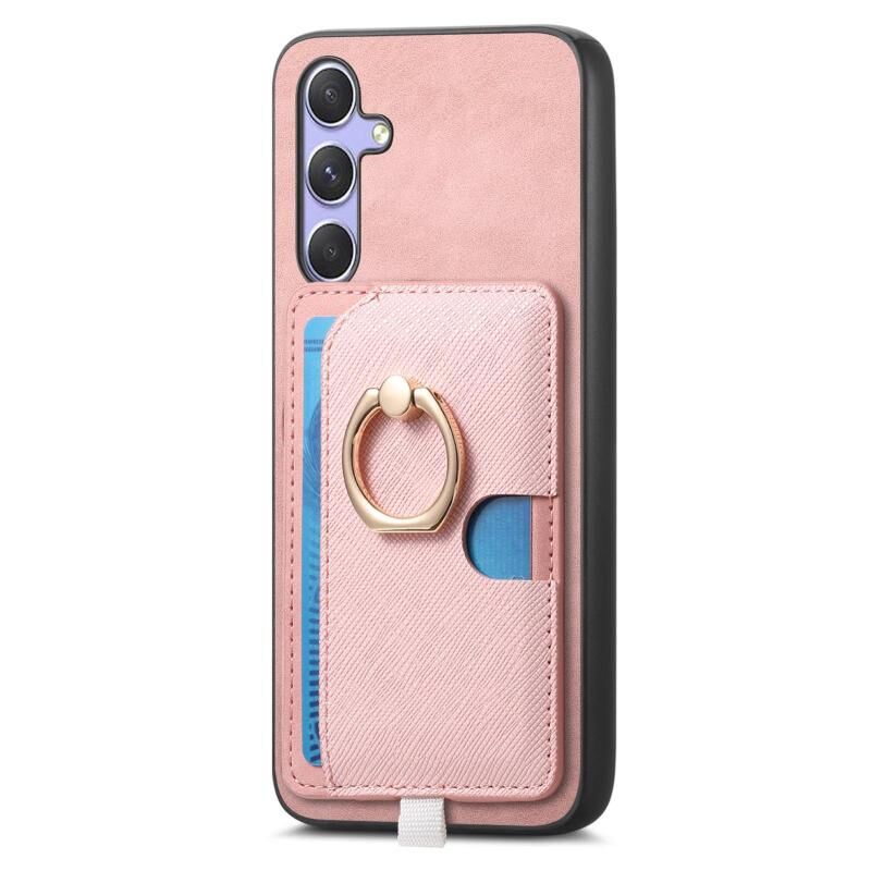 Θήκη κινητού τηλεφώνου Samsung Galaxy A35 5G Retro Cross από δέρμα με ενσωματωμένη δακτύλιο και θήκη για κάρτες στο πλάι, συμβατή με MagSafe (ρόζ)