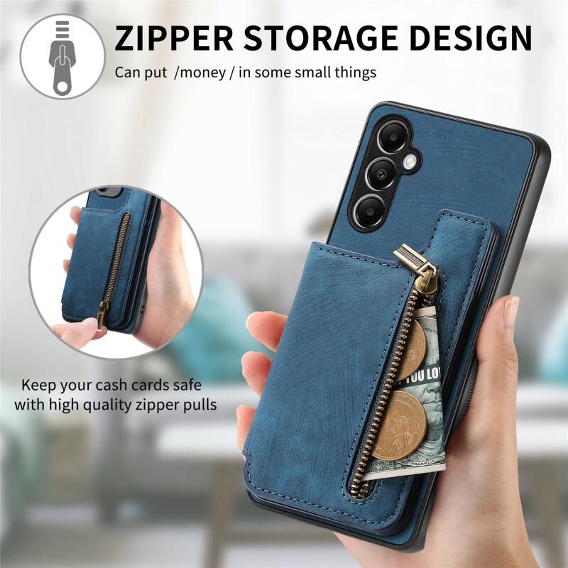 Για Samsung Galaxy A35 5G Retro δέρμα φερμουάρ πορτοφόλι πίσω θήκη τηλεφώνου (μπλε)