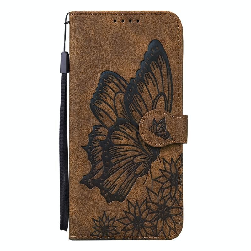 Θήκη τηλεφώνου Samsung Galaxy A35 5G, δερμάτινη, οριζόντια αναδίπλωση, με ανάγλυφα σχέδια πεταλούδων και ρετρό υφή (Μαύρο)