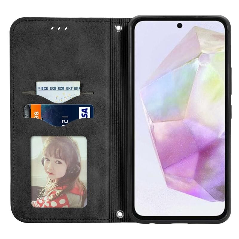 Για Samsung Galaxy A35 5G Retro δέρμα αίσθηση δέρματος μαγνητική θήκη τηλεφώνου δερμάτινη(Μαύρο)