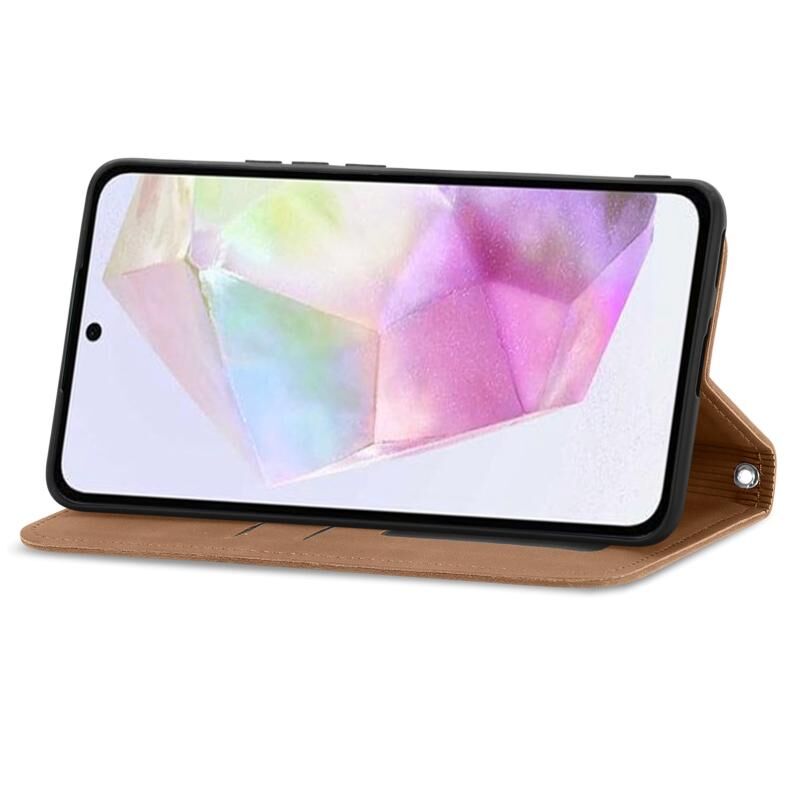 Για Samsung Galaxy A35 5G Retro δέρμα αίσθηση δέρματος μαγνητική θήκη τηλεφώνου δερμάτινη (καφέ)