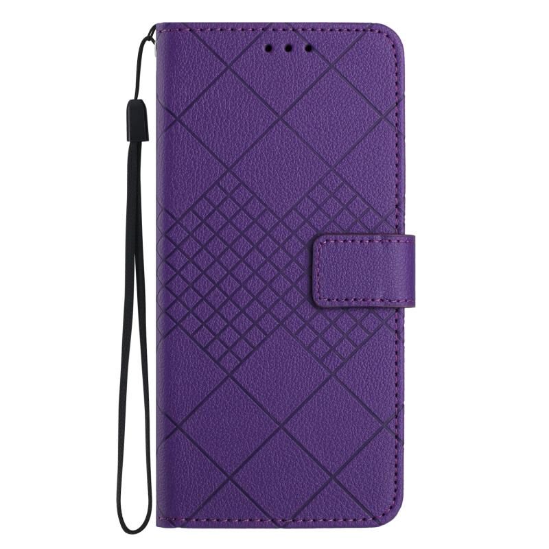 Για Samsung Galaxy A35 5G Rhombic Grid Texture Δερμάτινη θήκη τηλεφώνου (μωβ)