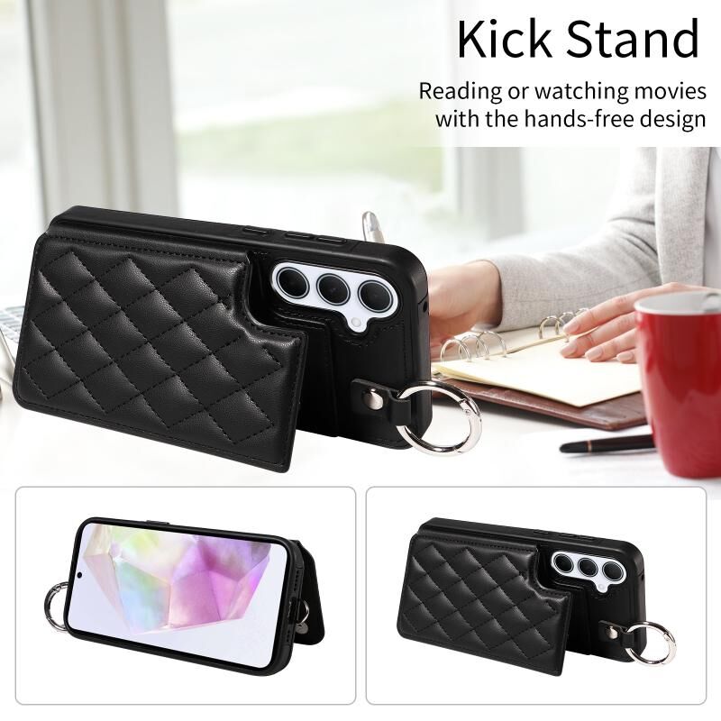 Για Samsung Galaxy A35 5G Rhombic υφή κάρτα τσάντα υπόθεση τηλεφώνου με σύντομο κορδόνι (μαύρο)
