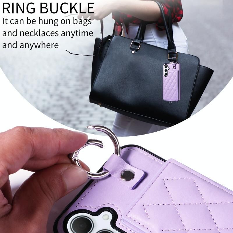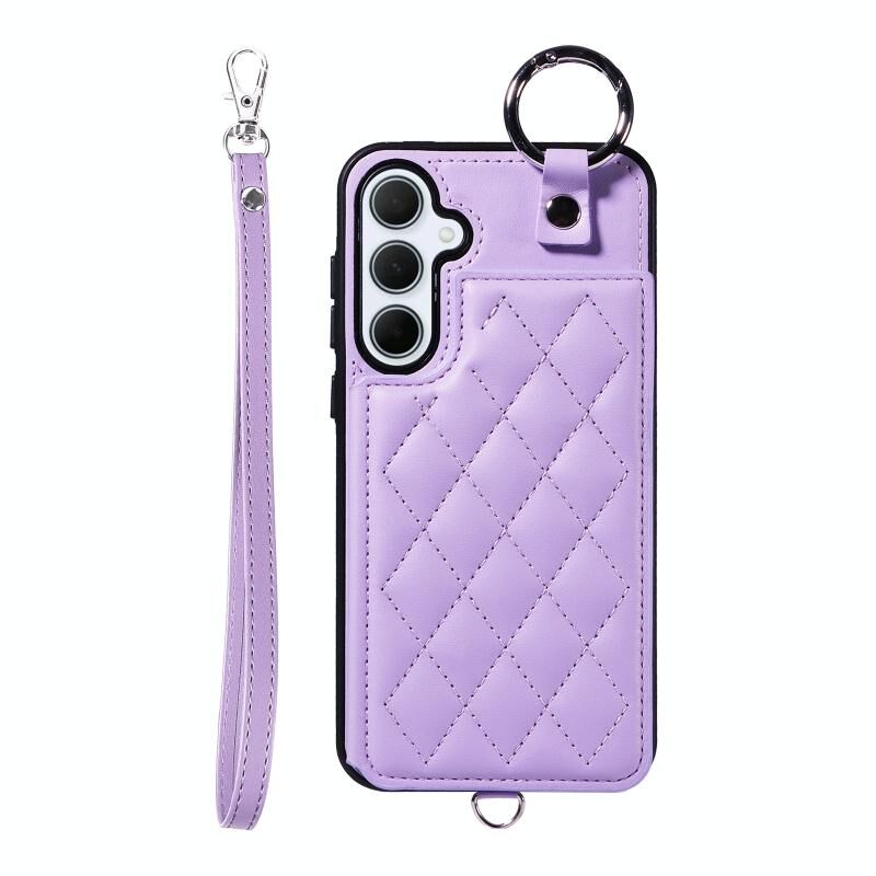 Για Samsung Galaxy A35 5G Rhombic υφή κάρτα τσάντα υπόθεση τηλεφώνου με σύντομο κορδόνι (μωβ)