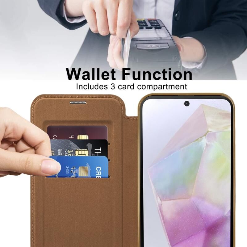Θήκη τηλεφώνου δερμάτινη με μαγνητική υποστήριξη MagSafe, αντι-κλοπής RFID για Samsung Galaxy A35 5G (Σκούρο Μπλε)