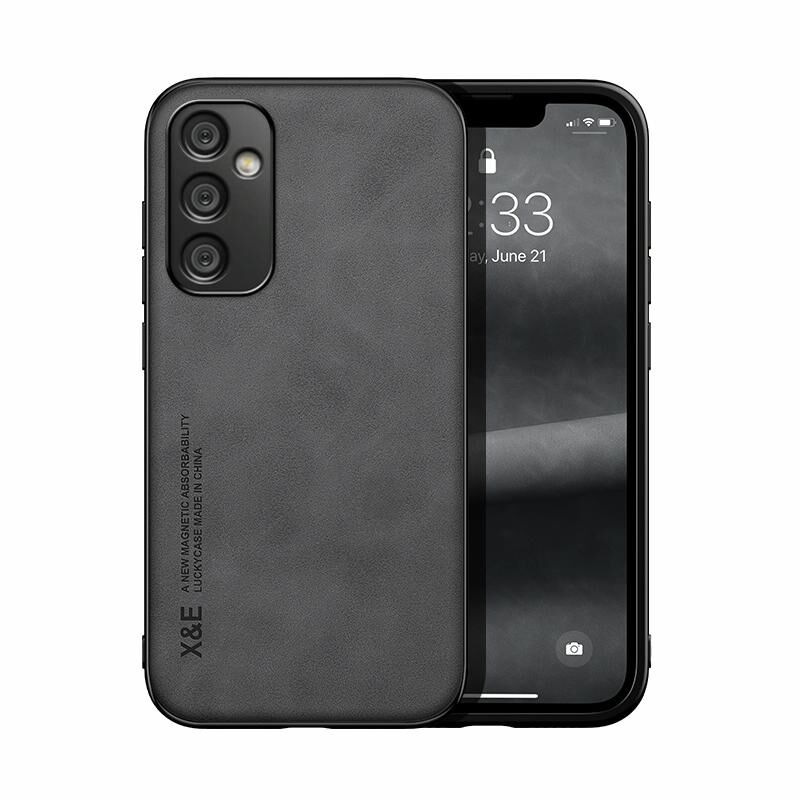 Για Samsung Galaxy A35 5G Skin Feel μαγνητική δερμάτινη θήκη τηλεφώνου (σκούρο γκρι)
