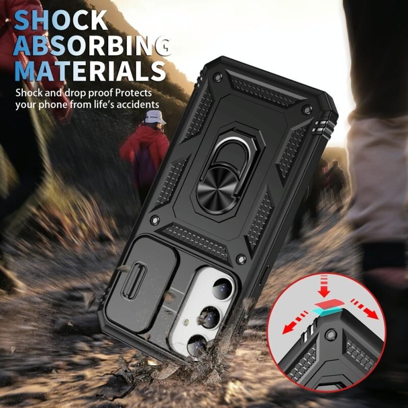 Για Samsung Galaxy A35 5G συρόμενη θήκη τηλεφώνου Camshield TPU + PC με θήκη (μαύρο)