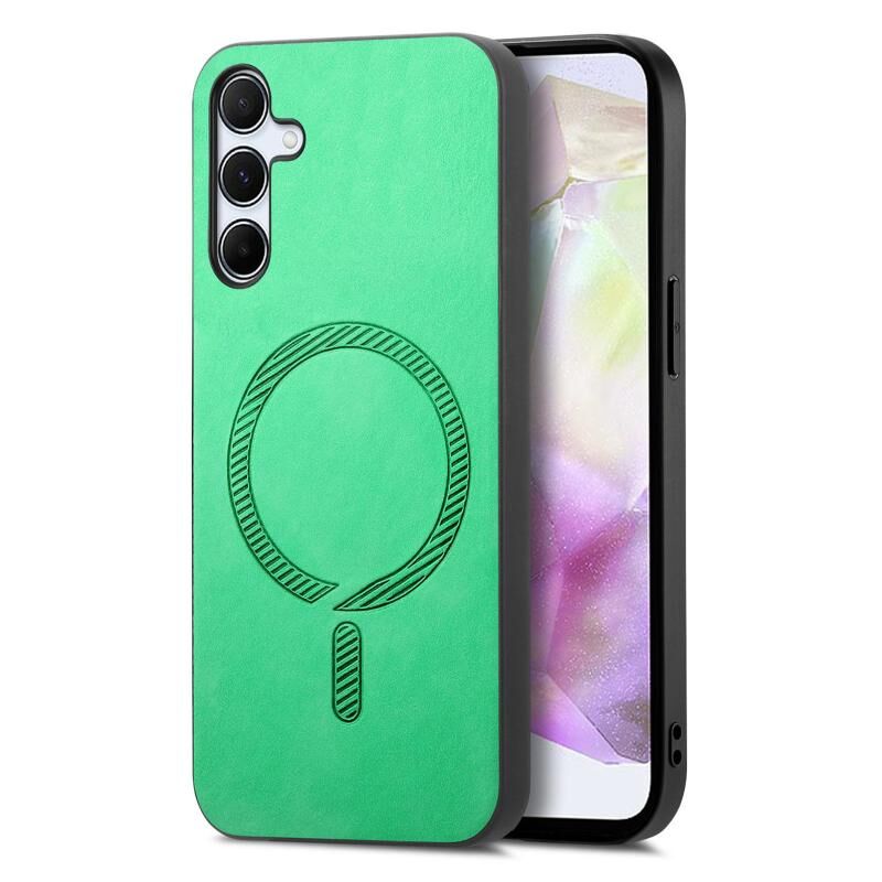 Θήκη κινητού τηλεφώνου για Samsung Galaxy A35 5G, μονόχρωμη, ρετρό, με MagSafe, από PU (ροζ)