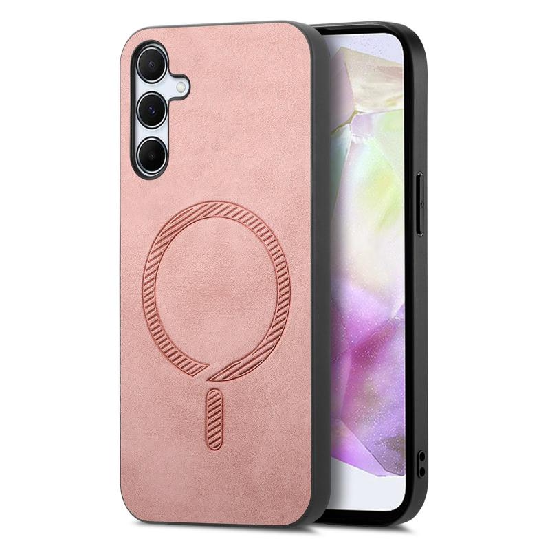 For Samsung Galaxy A35 5G Solid Color Retro Magsafe PU Back Cover Phone Case(Pink)