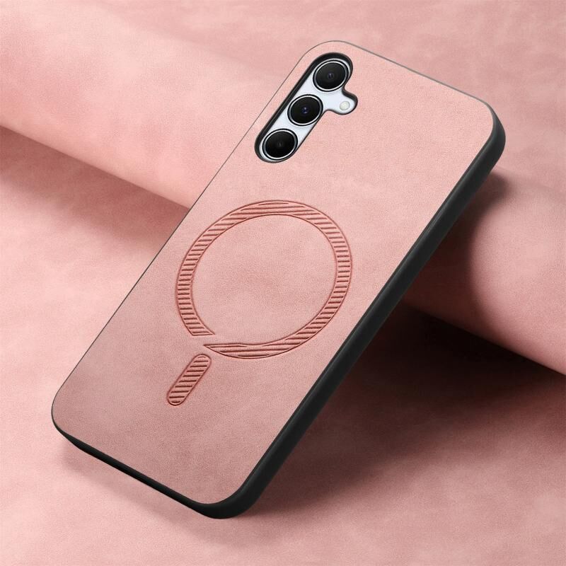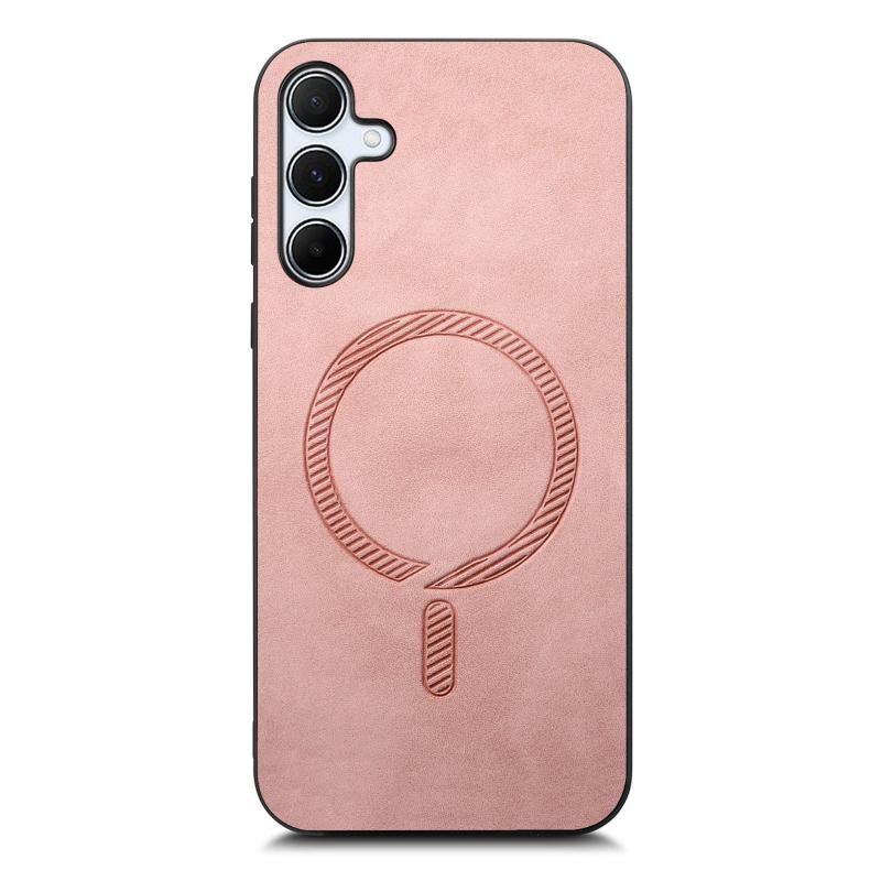 Θήκη κινητού τηλεφώνου για Samsung Galaxy A35 5G, μονόχρωμη, ρετρό, με MagSafe, από PU (ρόζ)