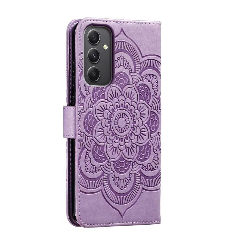 Για Samsung Galaxy A35 5G Sun Mandala ανάγλυφο μοτίβο τηλέφωνο δερμάτινη θήκη (μωβ)